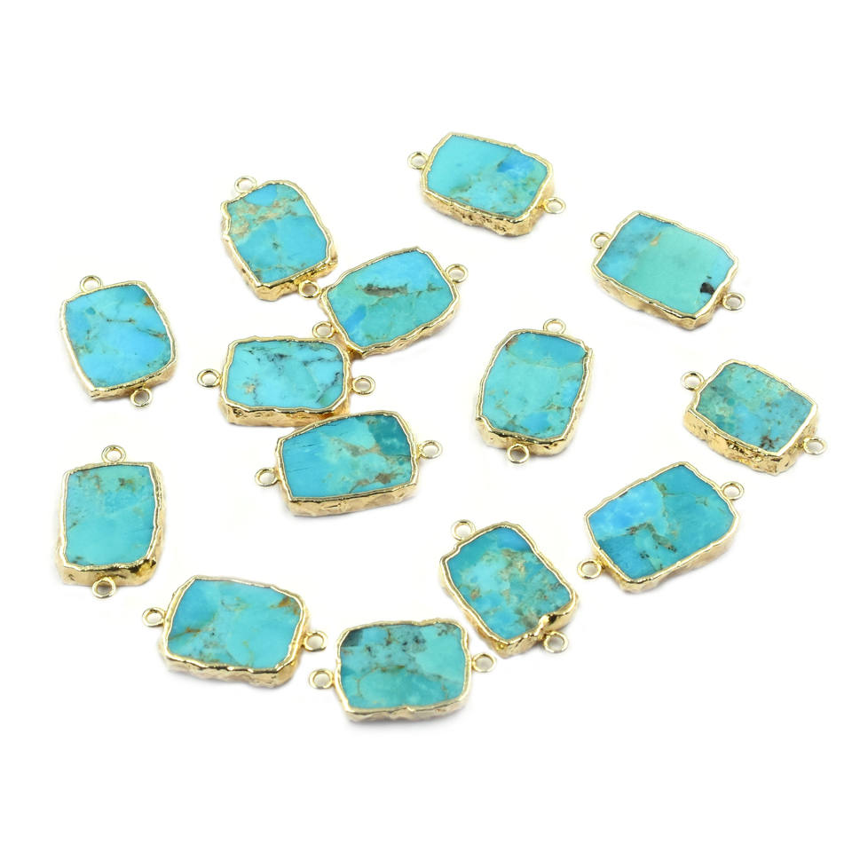 Kingman bloque turquesa 14K chapado en oro forma rectangular conector con fianza 20-22mm