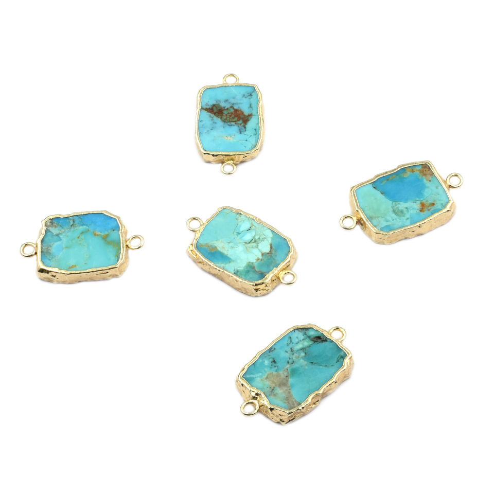 Conector chapado en oro con forma rectangular turquesa Kingman Block