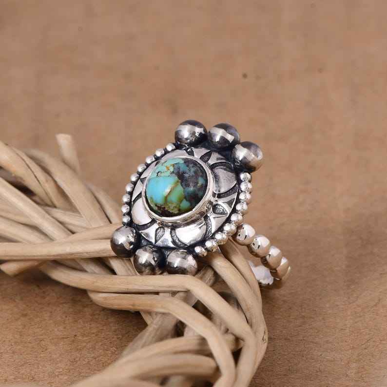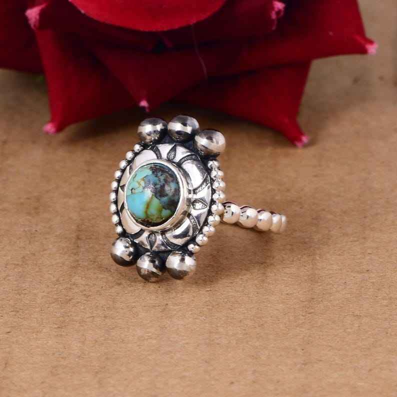Kingman turquesa anillo de plata esterlina hecho a mano Boho Tribal joyería suroeste declaración anillo regalo para ella