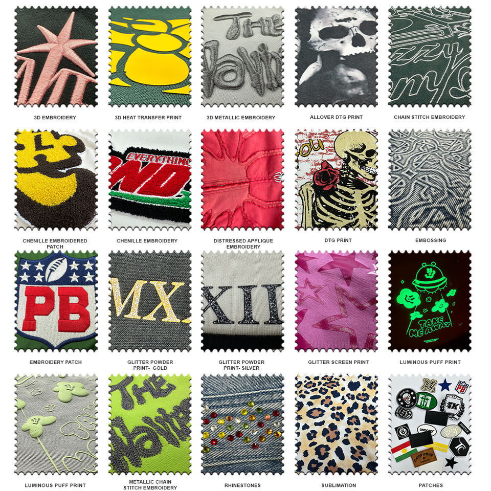 Bordado, Impreso, Corbata tintada, Bordado 3D, Tinte de inmersión