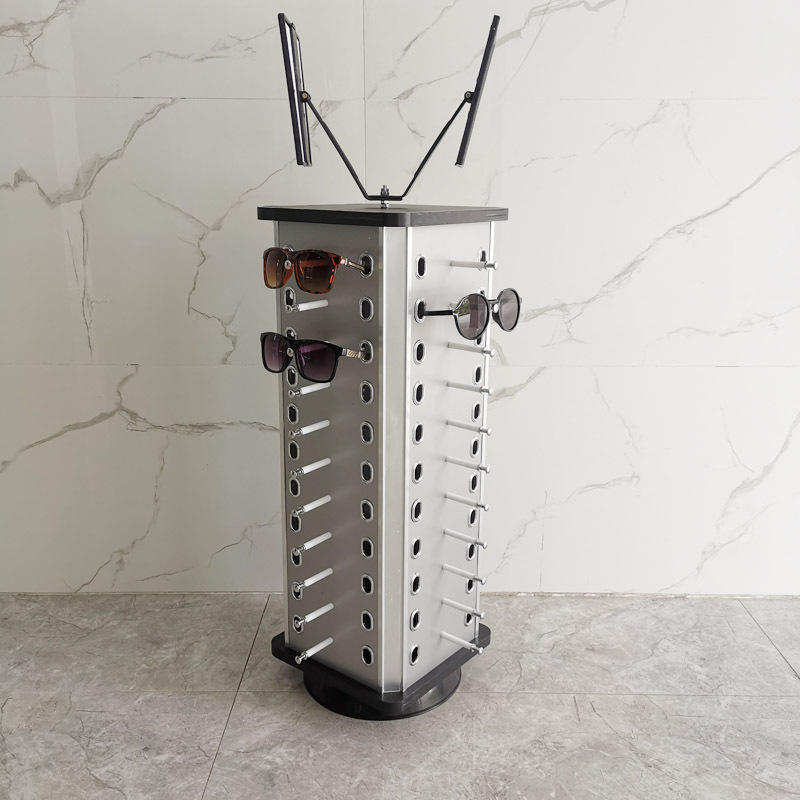 Kingswin Gafas de Sol Cuadradas Redondas Soporte Giratorio de Metal para Gafas, Soporte de Exhibición para Gafas de Sol, Estante de Exhibición para Encimera