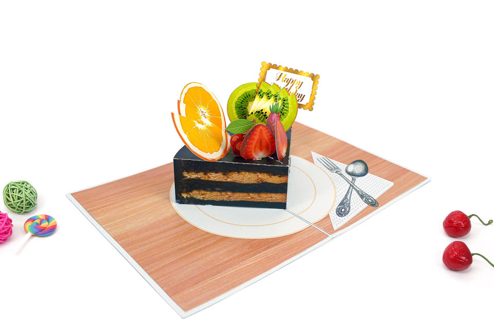 Kiricard vietnamita hecho a mano 3D Pop Up Card Tema de pastel de cumpleaños para venta al por menor y al por mayor