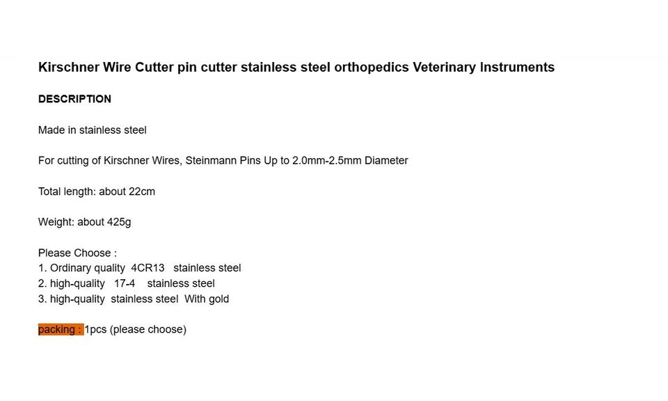 Especificación:Kirschner cortador de alambre Pin cortador Kirschner alambre tijeras ortopedia instrumentos certificados CE Mahersi
