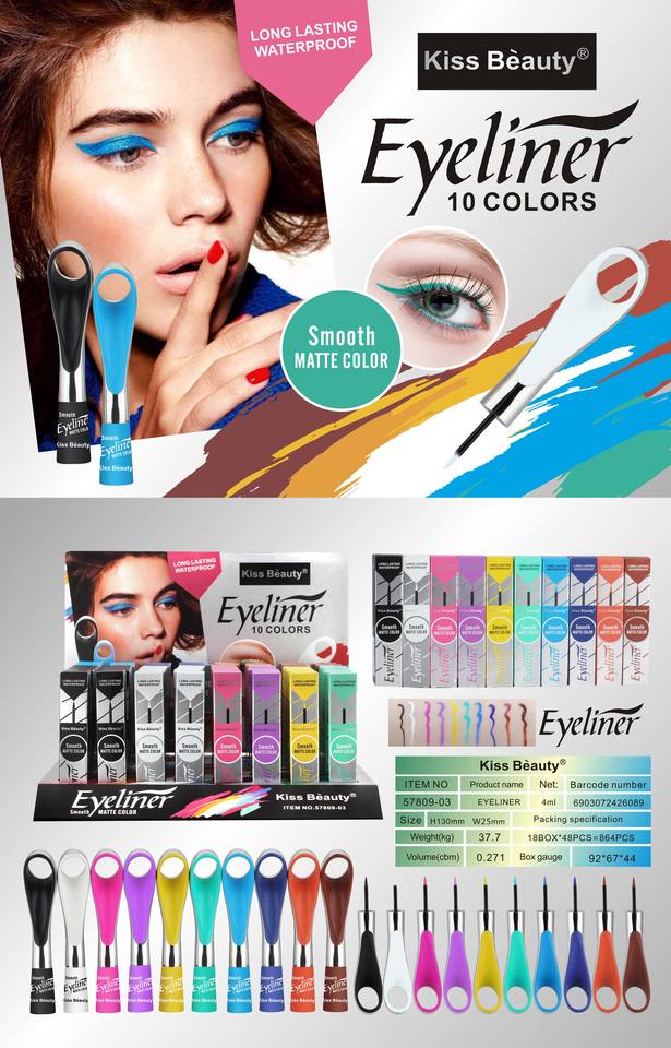 Kiss Beauty - Delineador Líquido Mate de 4 ml y 10 Colores, Resistente al Agua y de Larga Duración, Producto de Maquillaje Cosmético al por Mayor, Marca Privada