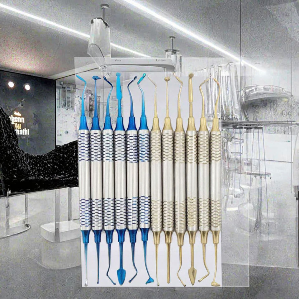 Kit de 6 Espátulas de Resina Compuesta Dental de 18.5 cm con Recubrimiento de Titanio, Instrumento Oral, Resina, Equipos de Terapia Oral, Accesorios