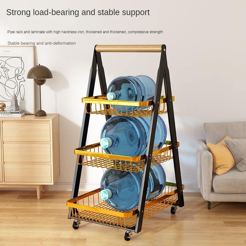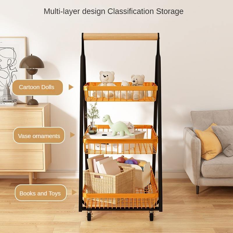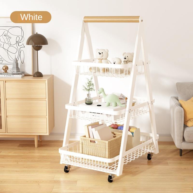 Carrito de Almacenamiento Metálico de 3 Niveles para Cocina con Ruedas, Soporte Desmontable para Frutas con Asa de Madera