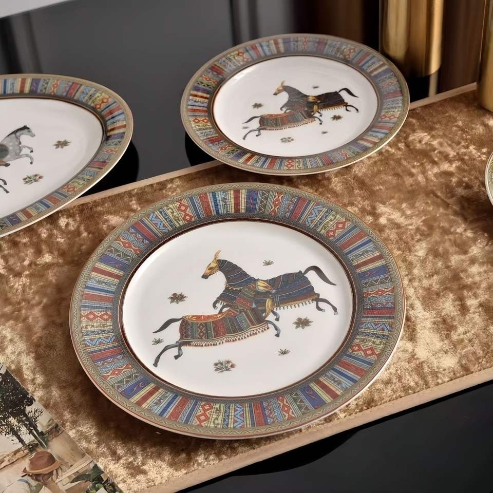 Accesorios de Cocina, Exquisitos Juegos de Vajilla de Cerámica, Juegos de Vajilla de 58 Piezas, Cuatro Caballos de Guerra, Porcelana de Lujo Europea, Buena Venta