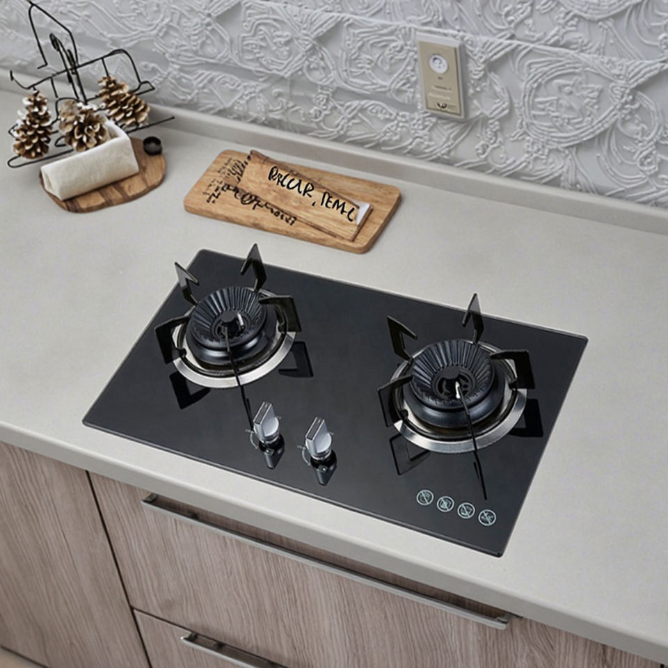 Electrodoméstico de cocina, estufas de cocina de vidrio templado, quemador de inducción integrado, estufa de Gas de 2 quemadores