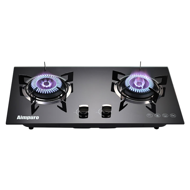 Electrodomésticos de cocina de doble cocina, cocina de Gas integrada, estufa de Gas de vidrio templado, encimera de Gas de 2 quemadores de hierro fundido de 100Mm