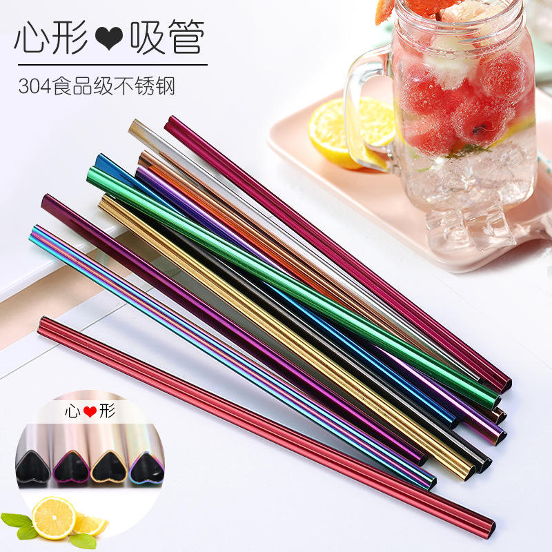 Accesorios de Bar para Cocina, Pajitas de Acero Inoxidable Multicolores, Pajita para Té con Leche en Forma de Corazón