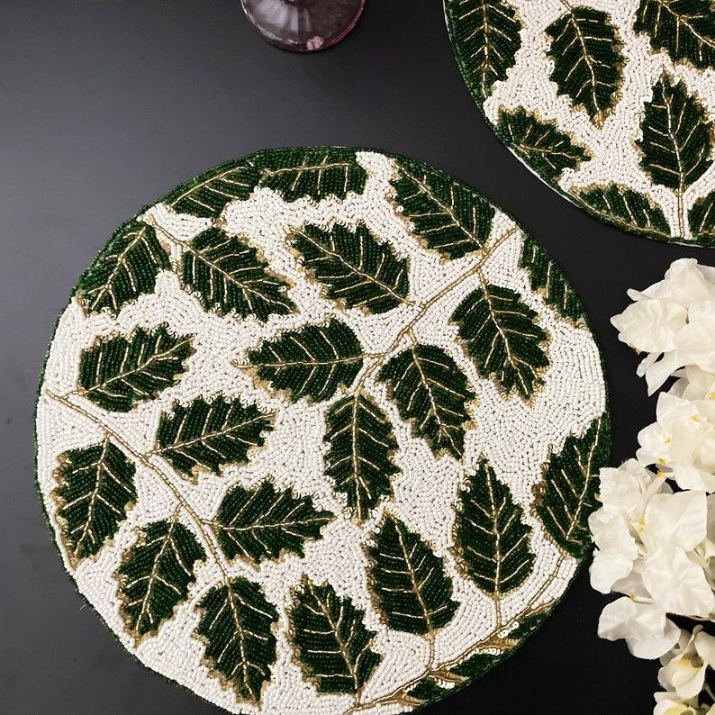 Camino de Mesa con Cuentas para Cocina, Mantel Individual Decorativo para Mesa de Comedor, Camino de Mesa con Cuentas Hecho a Mano de 13x36, Camino de Mesa Decorativo Bordado para Bodas