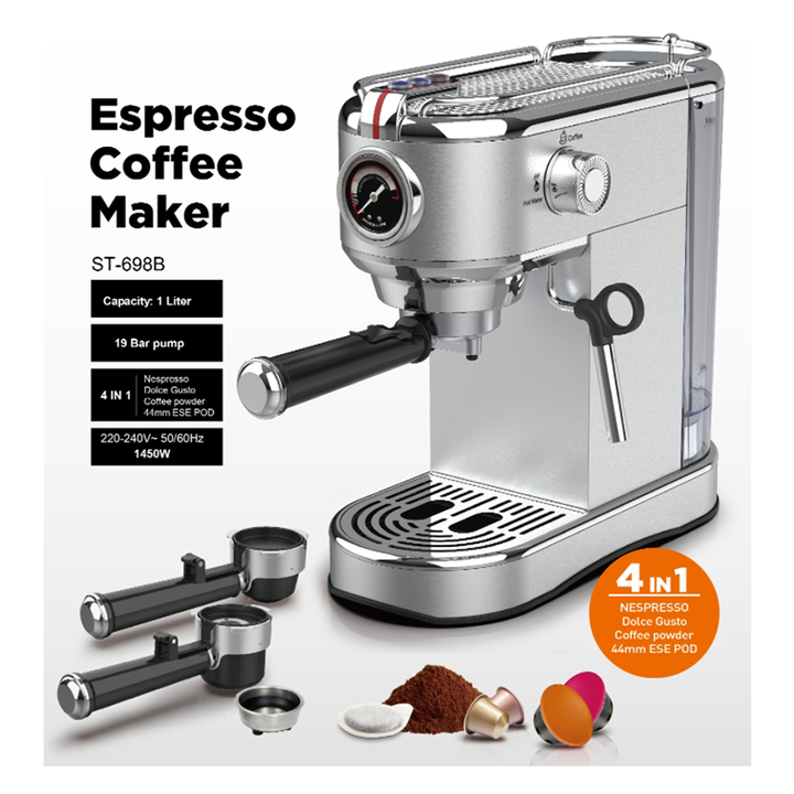 4 en 1, Nespresso/Dolce Gusto/Café molido/Cápsula ESE de 44 mm