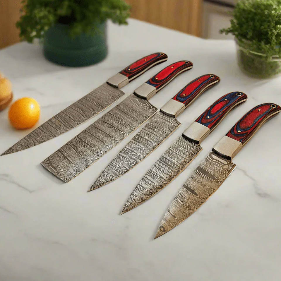 Juego de Cuchillos de Chef de Acero de Damasco