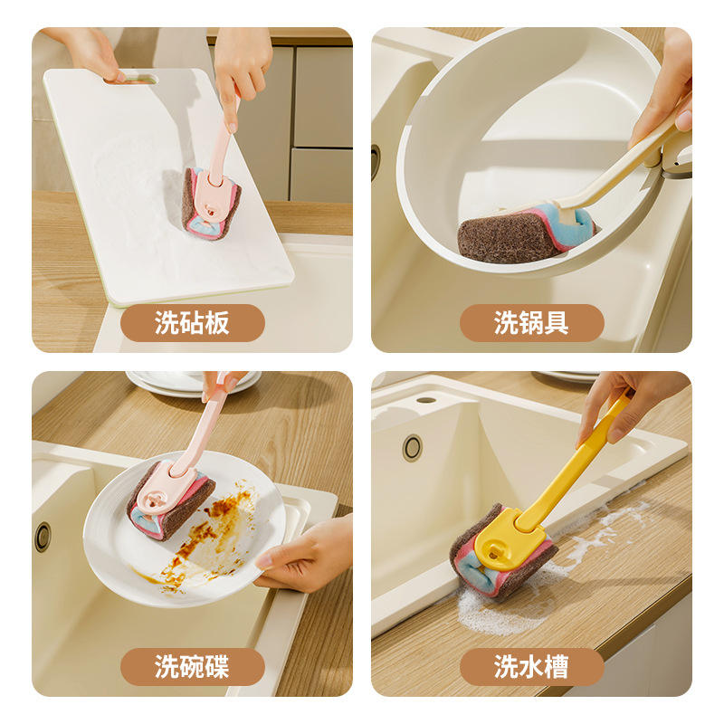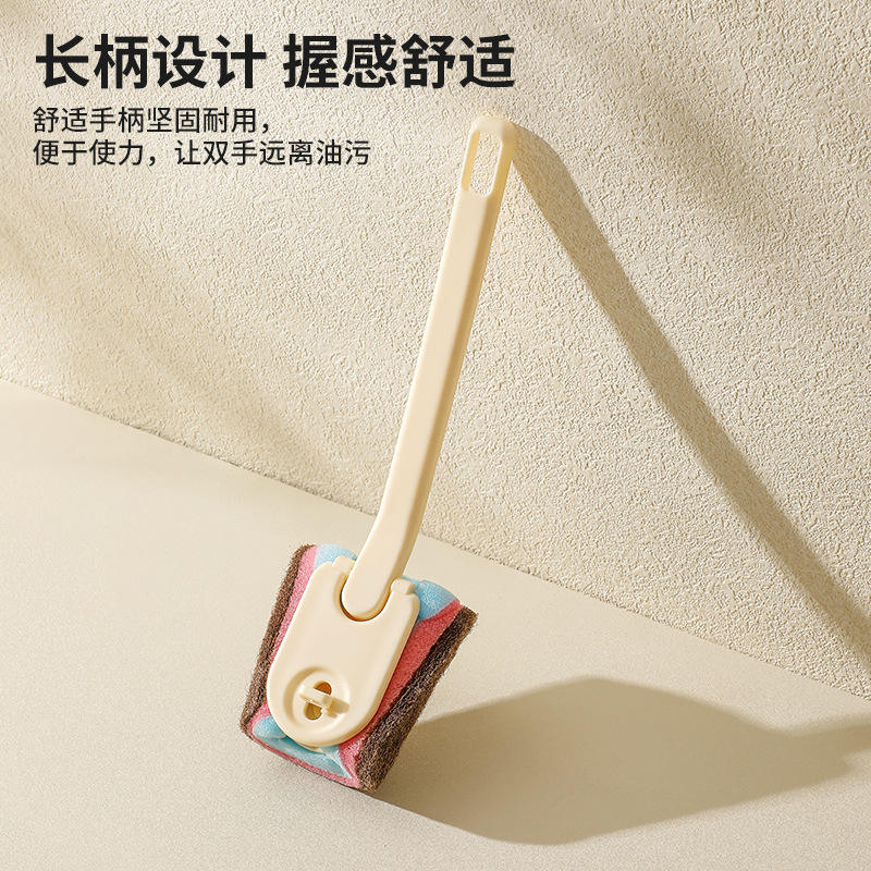 Kitchen Cleaning Brush With Long Handle Durable Sponge Scrubber For Dish Plate Pot Washing