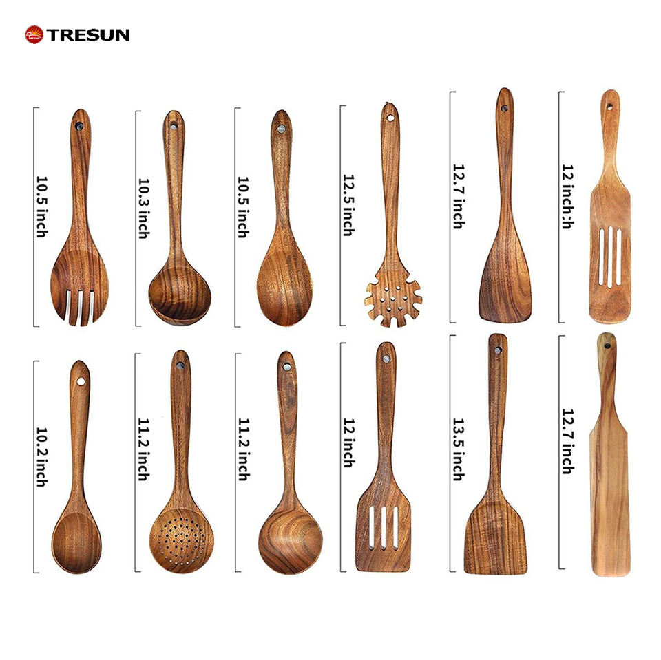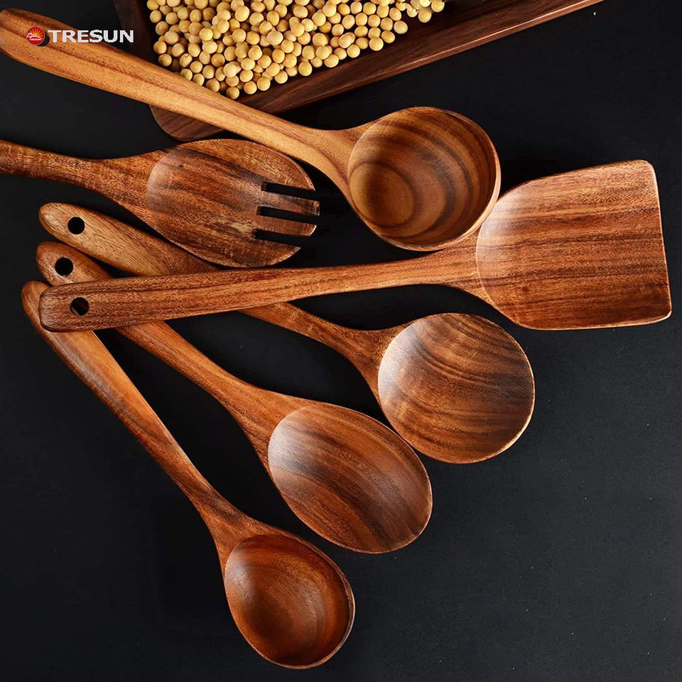 Juego de Utensilios de Cocina Modernos TRESUN de 5 Piezas, Resistentes al Calor, de Madera de Teca Sostenible de Grado Alimenticio, para Uso Doméstico y en Restaurantes