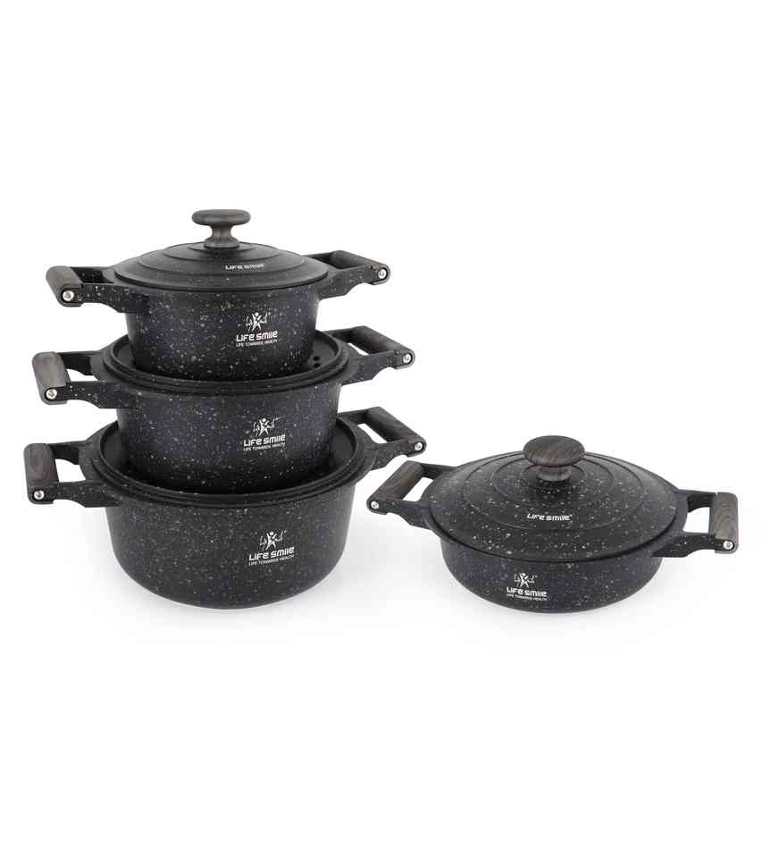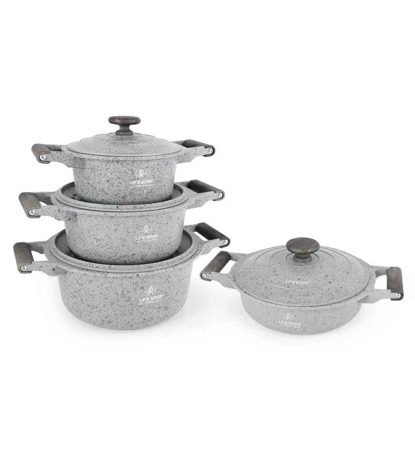 Utensilios de cocina, ollas, revestimiento de granito multicapa antiadherente con tapa de bloqueo de humedad y fondo de inducción