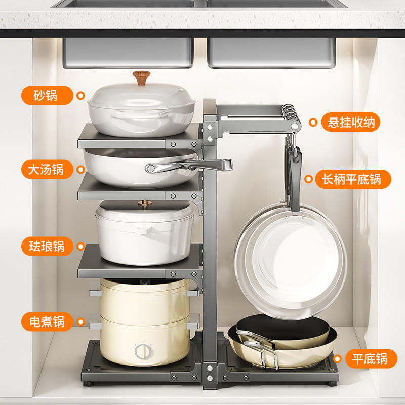Estante de Cocina Multiusos, Organizador de Gabinetes de Almacenamiento de Varias Capas, Estante de Acero al Carbono para Debajo del Fregadero