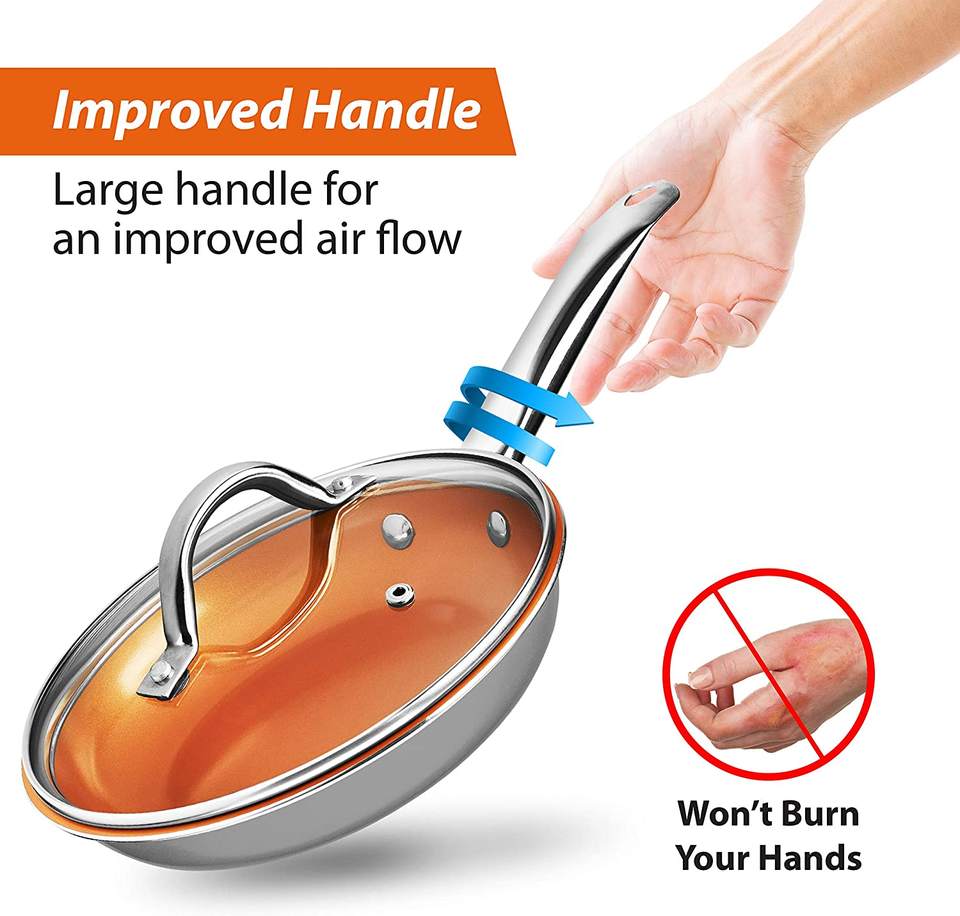 Olla y sartén de cobre para cocina Juegos de utensilios de cocina antiadherentes con revestimiento antiadherente de cerámica