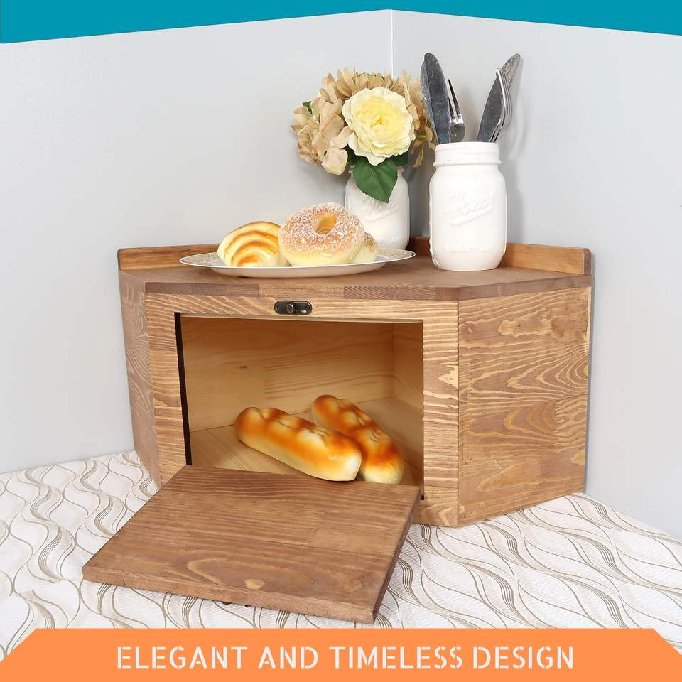 Kitchen Corner Wooden Bread Box Farmhouse Countertop Bread Storage Bin