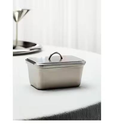 Mantequillera metálica para encimera de cocina con tapa, contenedor para servir mantequilla en el desayuno