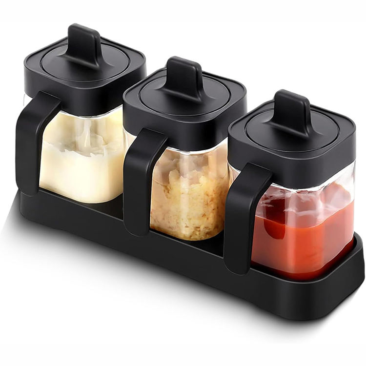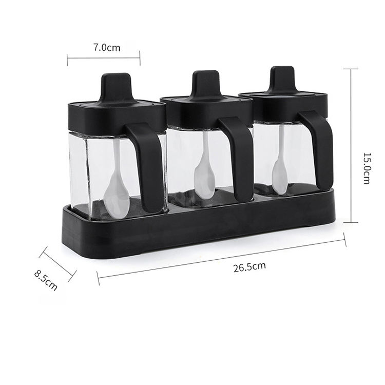 Juego de contenedores de sal y azúcar para encimera de cocina, 3 tarros de especias con cuchara y bandeja, tarro de condimentos, contenedor de especias