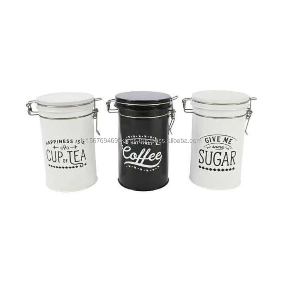 Ollas decorativas de cocina, botes de café y té de azúcar súper demandados, tarros de Metal con estampado de logotipo, cajas de almacenamiento de cocina de buena calidad
