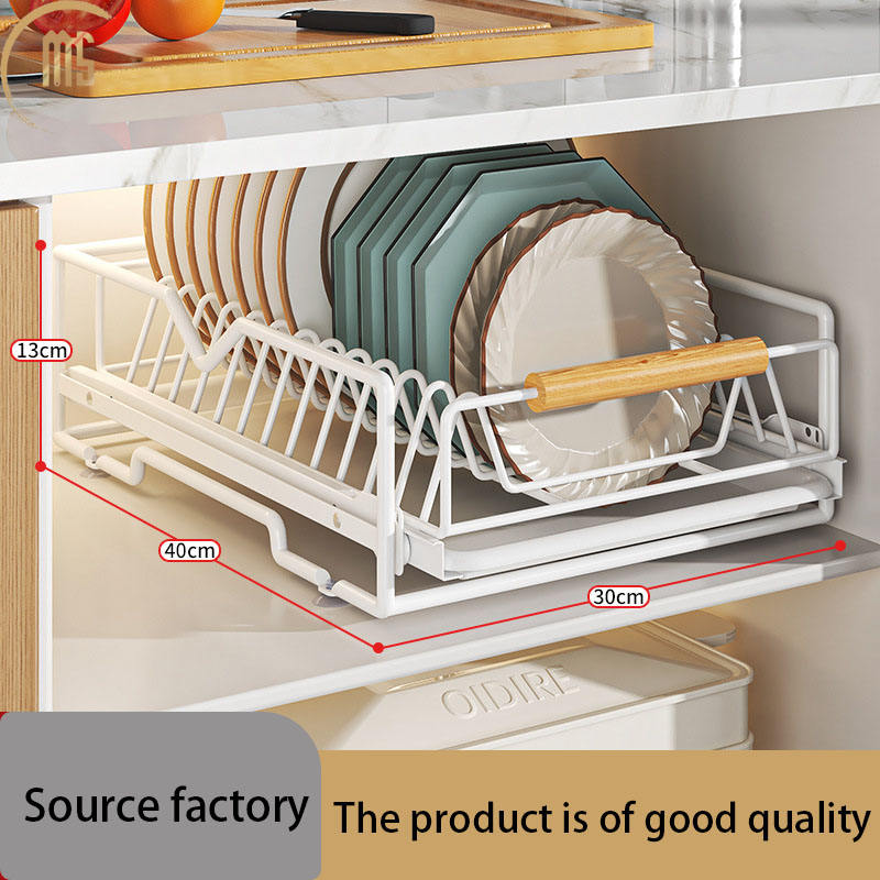 Estante de almacenamiento de platos de cocina estante de platos extraíble integrado estante de almacenamiento tipo cajón cesta de platos de partición