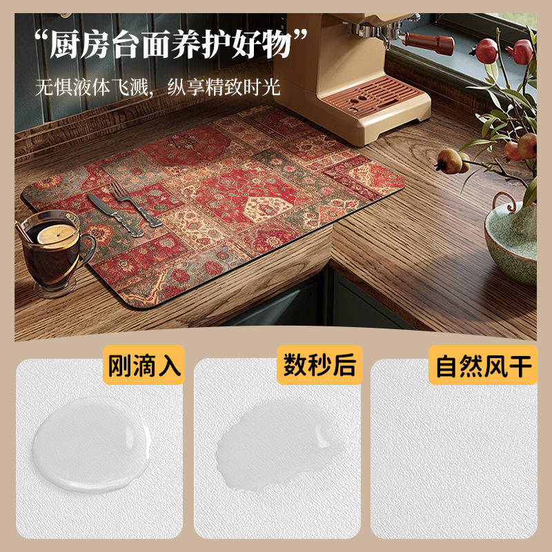 Tapete de Drenaje para Cocina, Rectangular, con Diseño Abstracto, Antideslizante, Fácil de Limpiar, para Secar Platos, Aislante del Calor