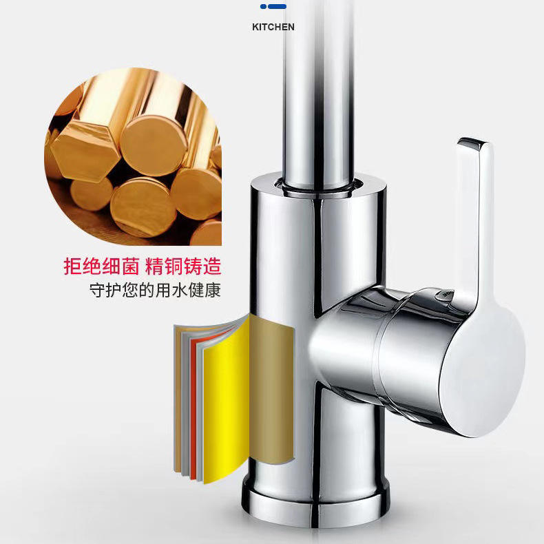 Grifo de Cocina Monomando Giratorio 360 Grados, Montaje en Encimera, Válvula Cerámica, 1.0-1.9 Galones/Minuto, Cuerpo de Cobre