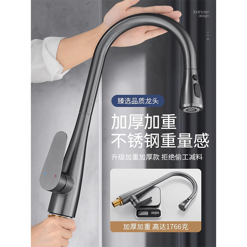 Grifo de cocina monomando de cobre 59 con rociador extraíble, montaje en cubierta, estilo moderno, con válvula de cerámica y llave de estilo vino.