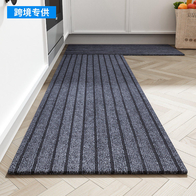 Tapete de Cocina a Rayas, de Fibra de Poliéster, Rectangular, Gris, con Rayas Verticales, Impermeable, Resistente al Aceite, Antideslizante, Tapete de Entrada Largo