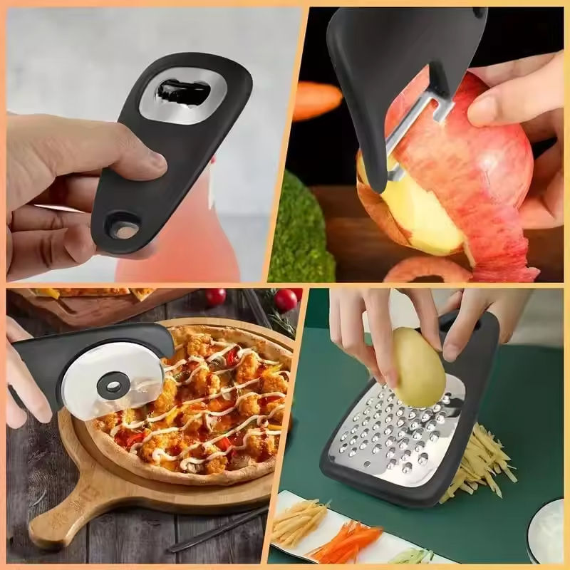 Juego de Utensilios de Cocina de 6 Piezas, Accesorios de Cocina que Ahorran Espacio, Pelador de Frutas y Verduras, Rallador de Chocolate, Abrebotellas, Cortador de Pizza