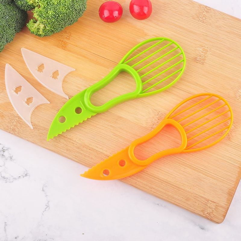 Cortador de aguacate de plástico 3 en 1, pelador de frutas, cortador de mantequilla