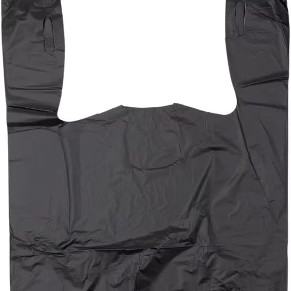 Bolsas de Basura de Cocina Negras de Plástico Tipo Camiseta con Asas, Material HDPE Reciclable, Impresión Flexográfica para Supermercado