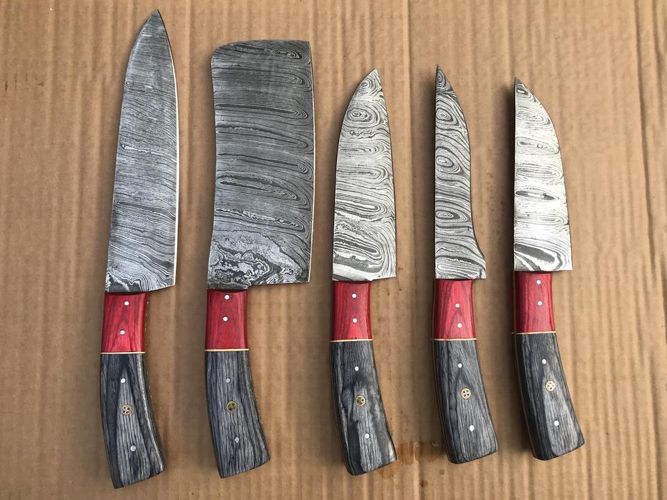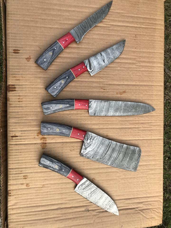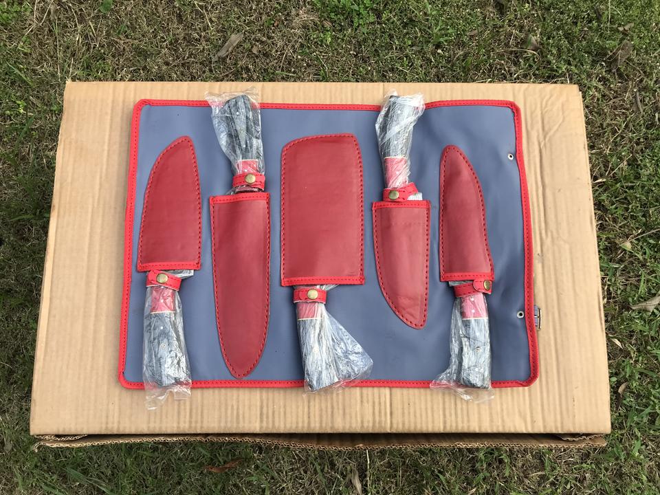 Juego de cuchillos de cocina en acero de Damasco con cuchillo de pecho y otros estilos Personalización opcional con cubierta de cuero