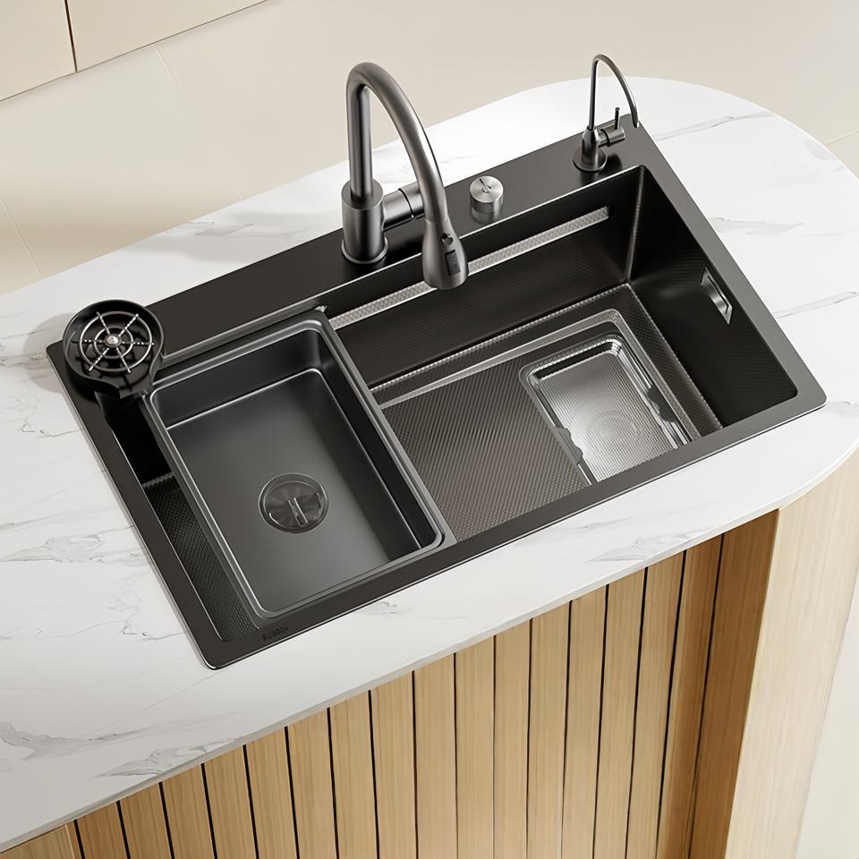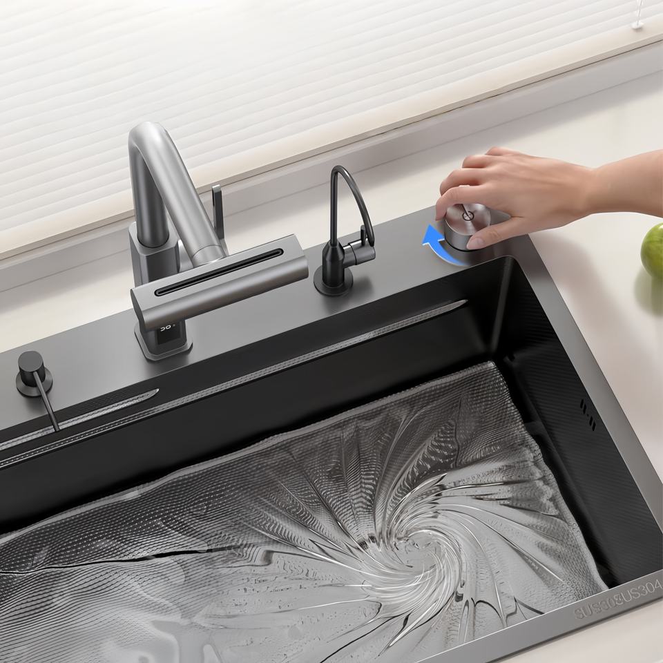 Fregadero de Cocina Grande de un Solo Tazón, Integrado, de Acero Inoxidable 304, para Instalar Sobre/Bajo/Entre Encimera, Fregadero Doméstico para Lavar Platos