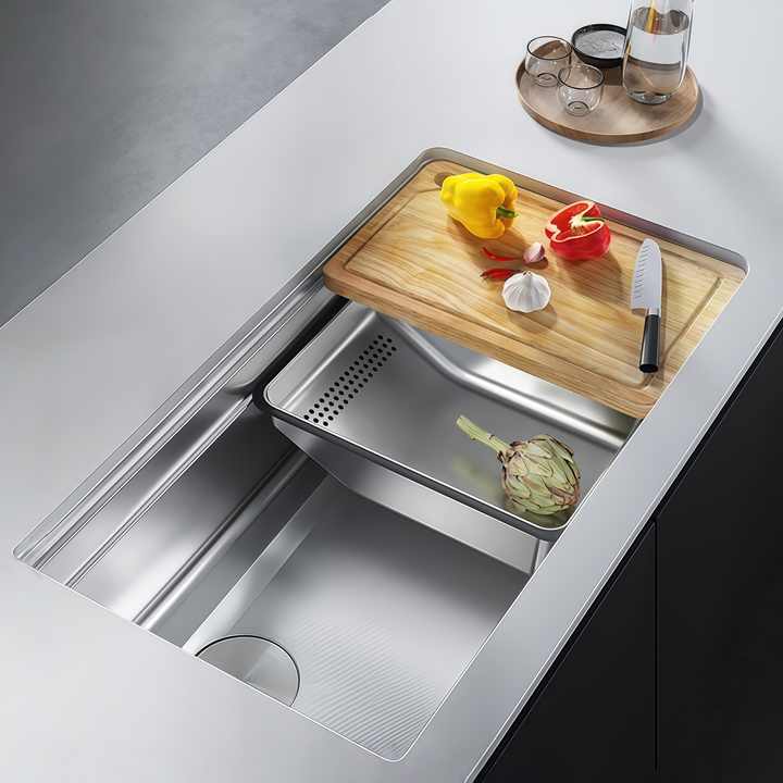 Fregadero de cocina grande de un solo tazón para lavar verduras, fregadero de encimera/bajo encimera para lavar platos