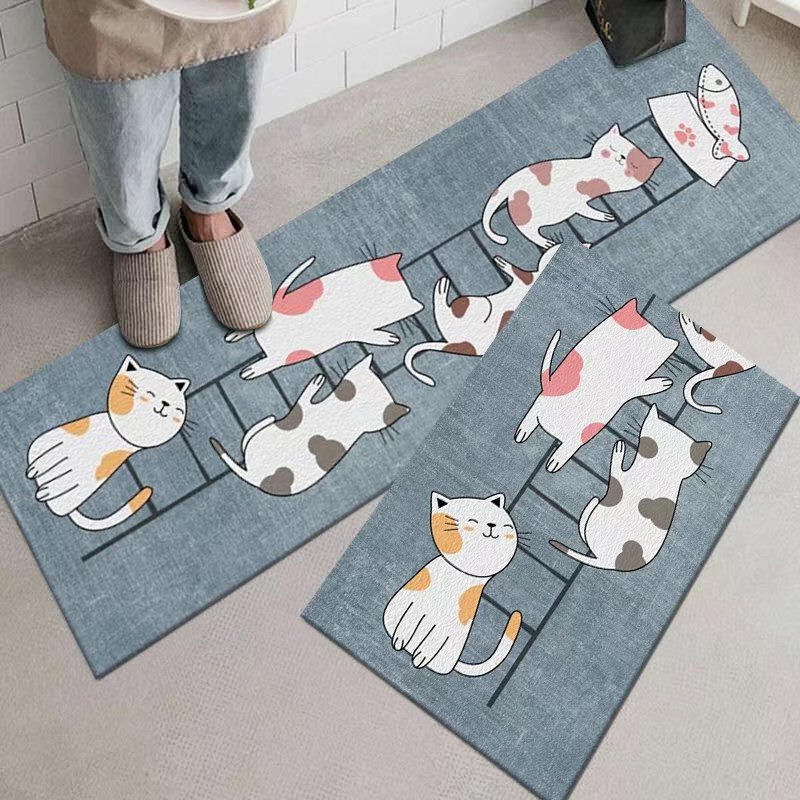 Alfombra de Cocina con Dibujos Animados de Animales, Alfombra de Entrada Antideslizante, Alfombra de Baño Absorbente para Dormitorio, Alfombra Simple y Moderna para el Hogar