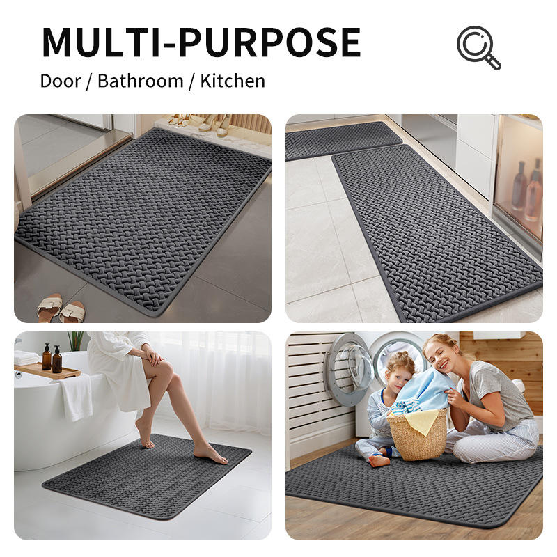 Alfombra de cocina rectangular antideslizante, lavable, absorbente de agua y aceite, para entrada de cocina, textura tejida de algodón y espuma gris