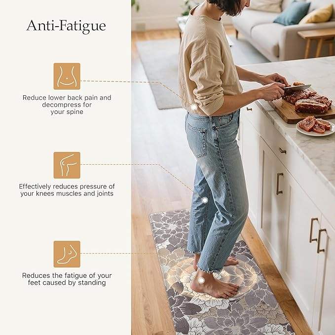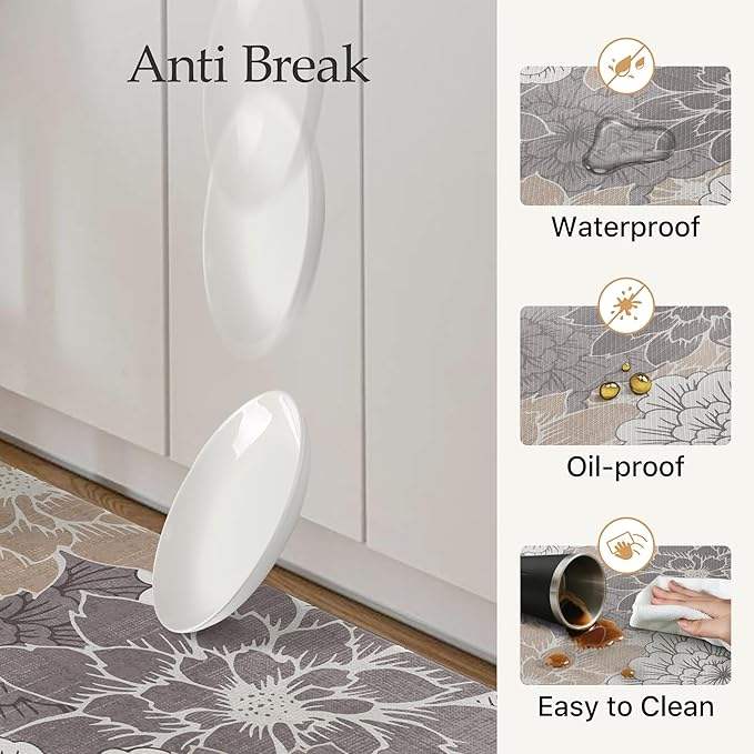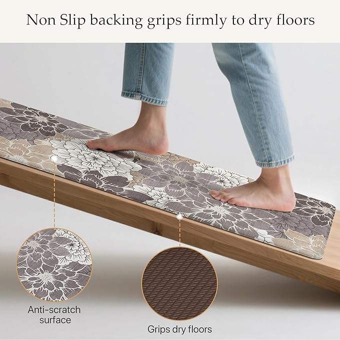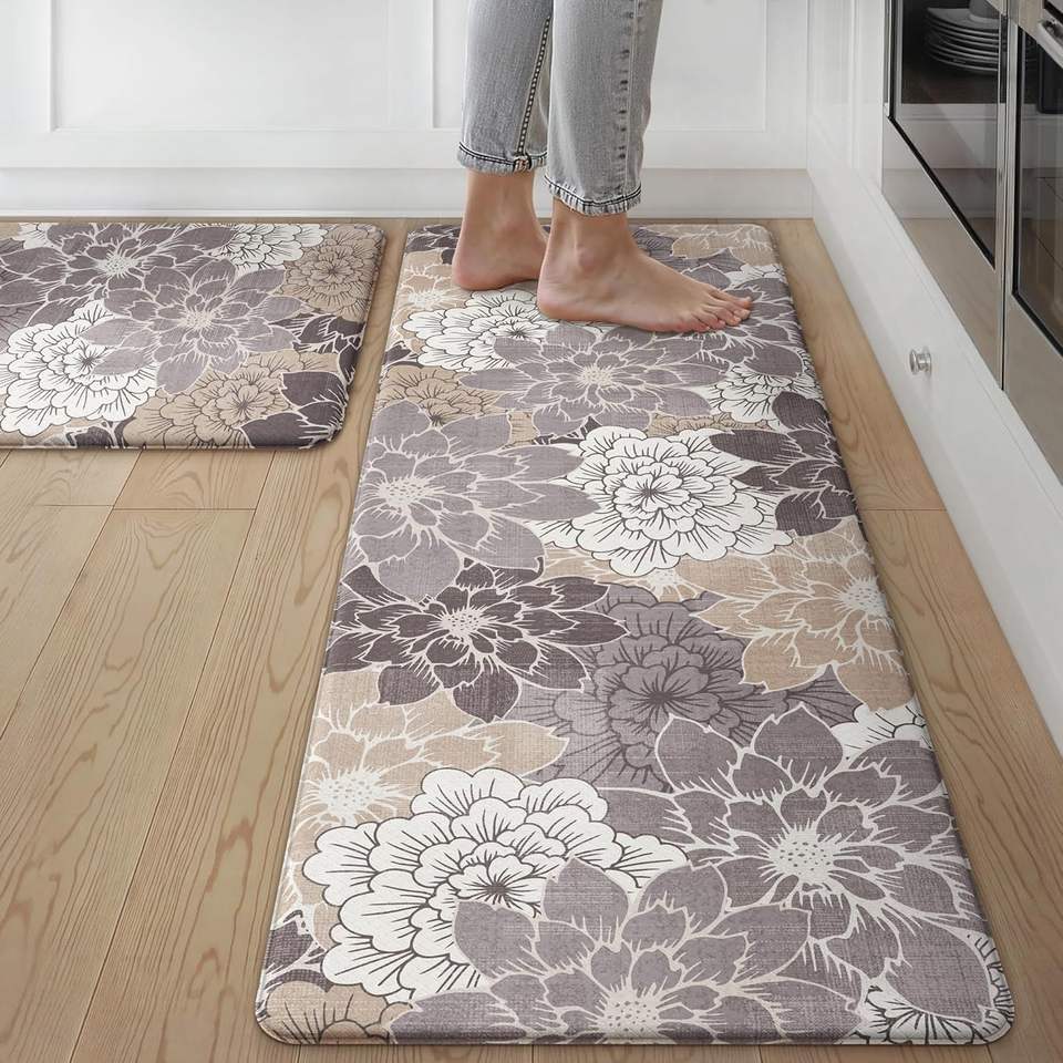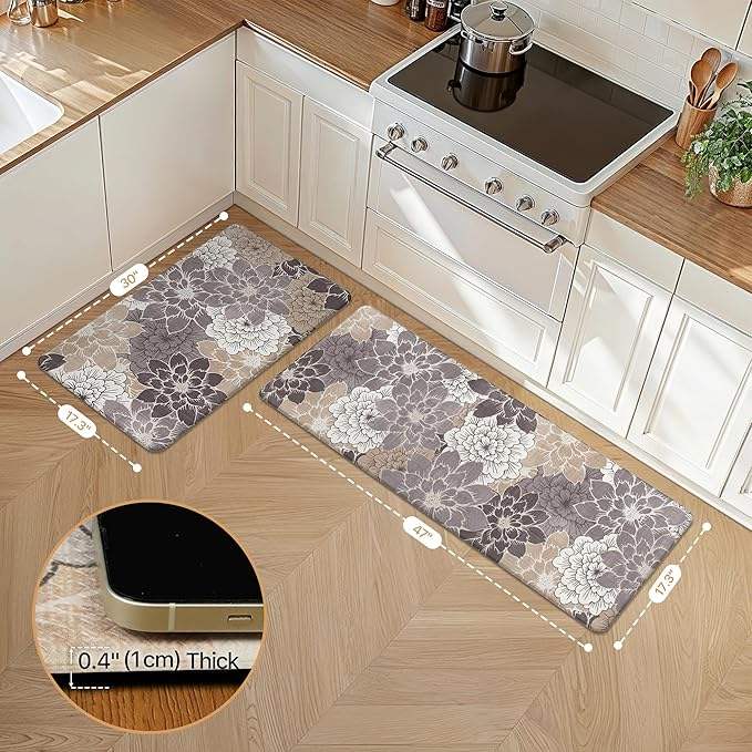Alfombras de Cocina, Alfombras Antideslizantes, Lavables, Impermeables, Acolchadas, Antifatiga, Alfombra de Corredor Floral para Lavandería, Fregadero, Oficina