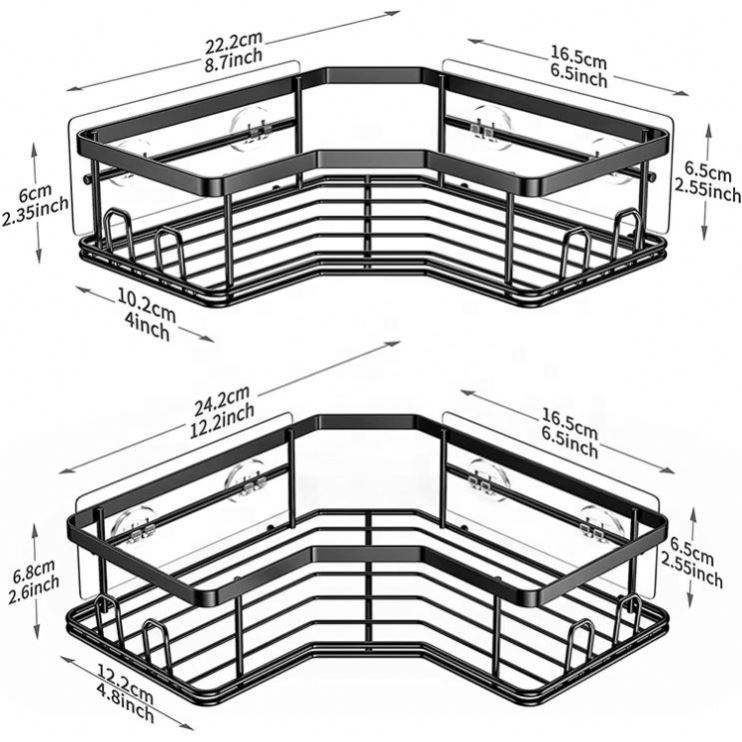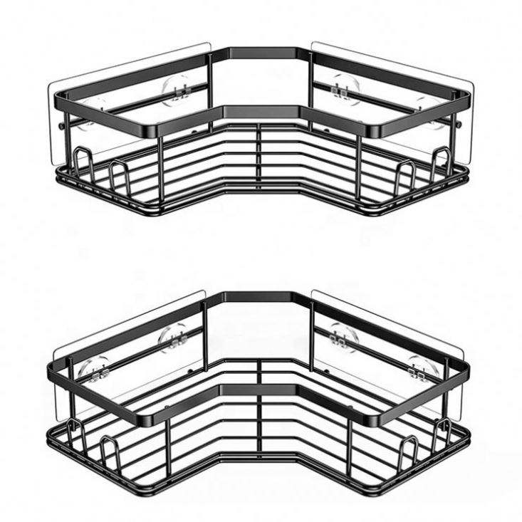Detalles del embalaje:Estante de almacenamiento de esquina de Metal para cocina con triángulo adhesivo sin perforaciones montado en la pared inodoro baño ducha Caddy organizador