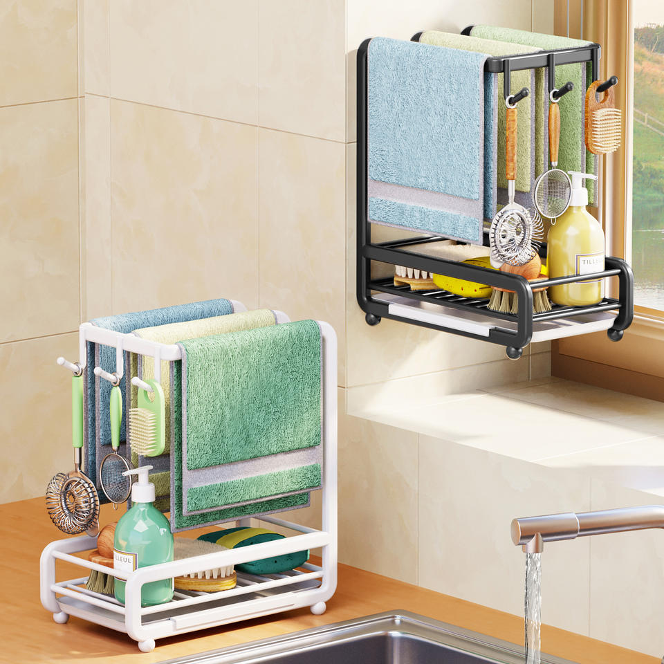 Encimera de Metal para cocina, fregadero, trapo, paños de cocina, soporte para colgar en la pared, esponja, accesorios de cocina, cepillo de limpieza, estante organizador