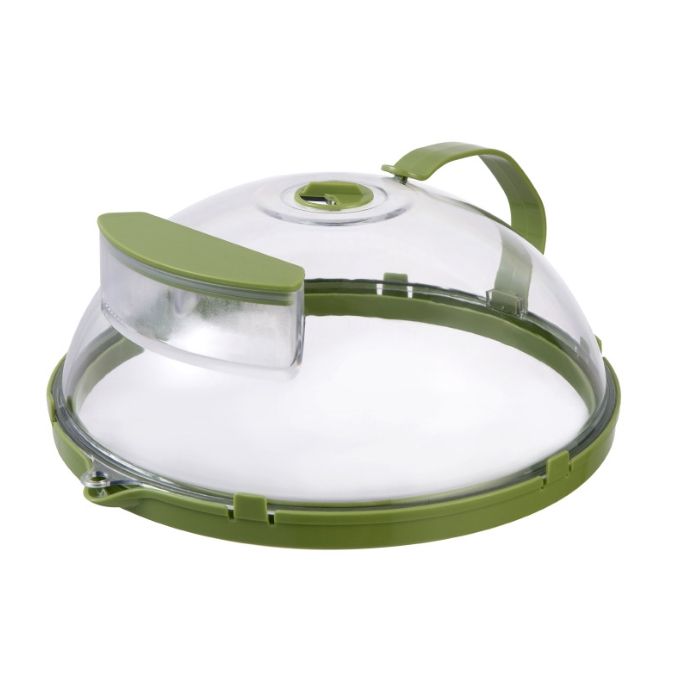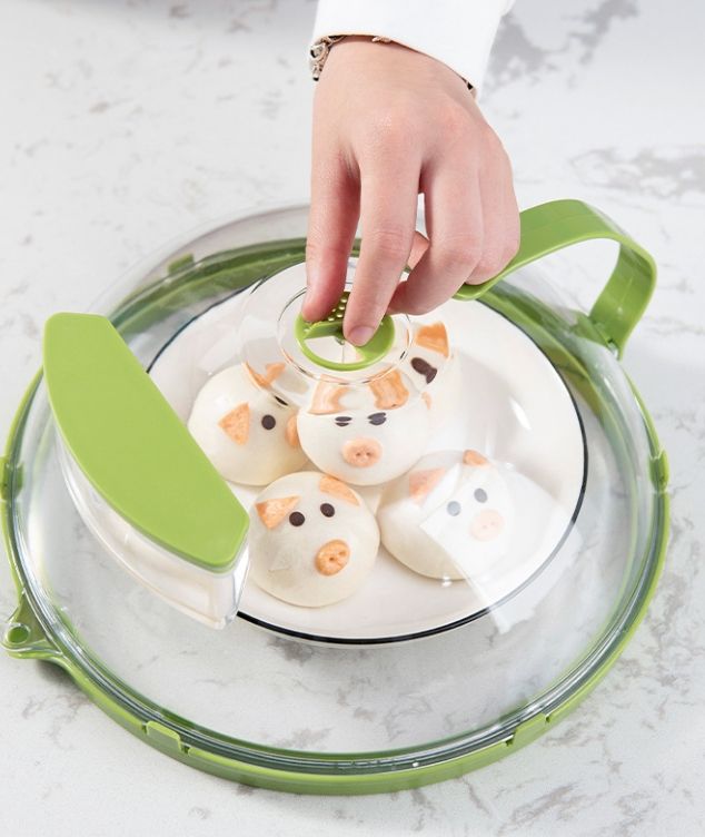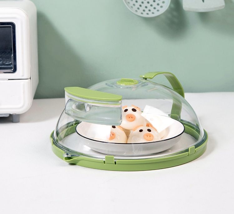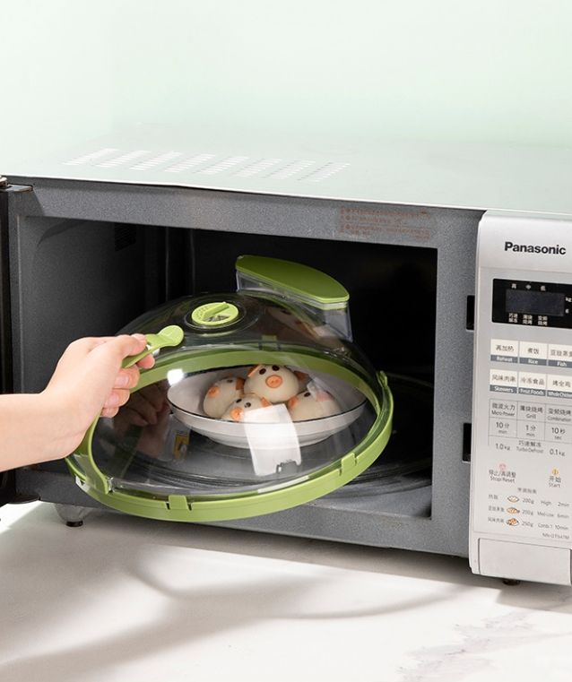Cubierta de salpicaduras de microondas con vapor de agua y mango