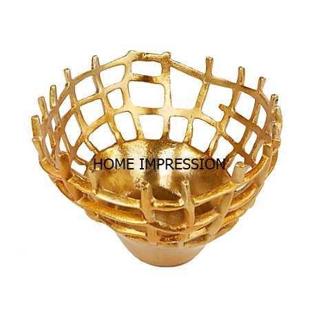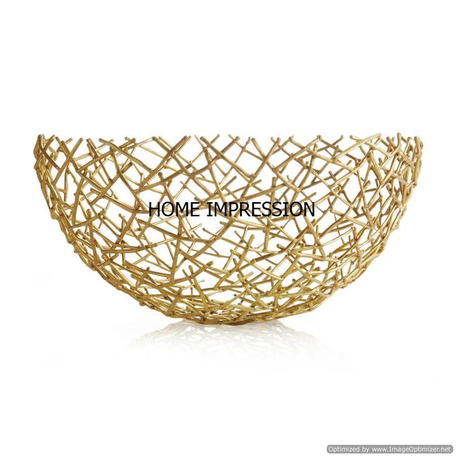 Organizador de cocina, vajilla, cuenco para servir frutas, cuenco brillante de aluminio chapado en oro de primera calidad, cuenco de almacenamiento de frutas a la venta