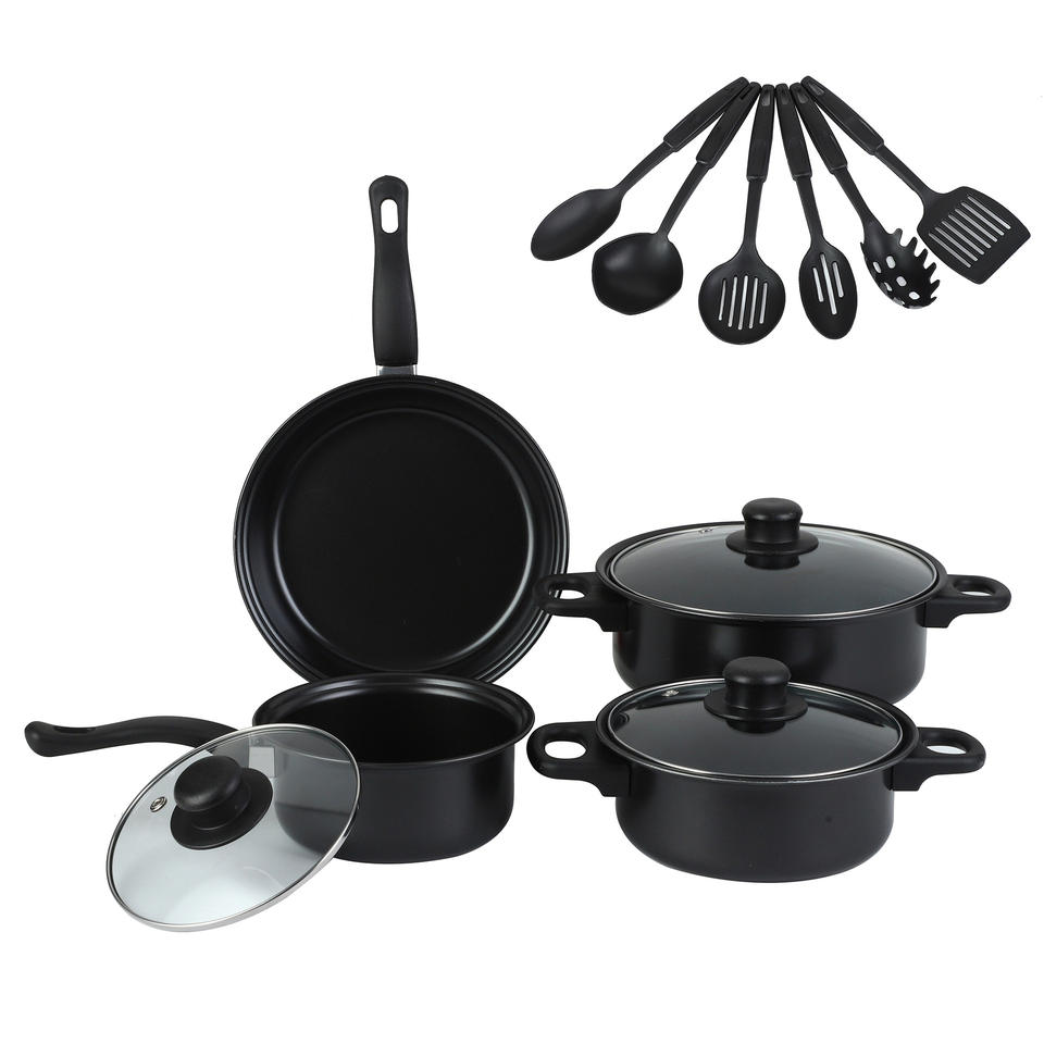 Juego de Ollas y Sartenes de Hierro Antiadherentes, Utensilios de Cocina de Metal, Olla para Sopa de Inducción, Juego de Utensilios de Cocina