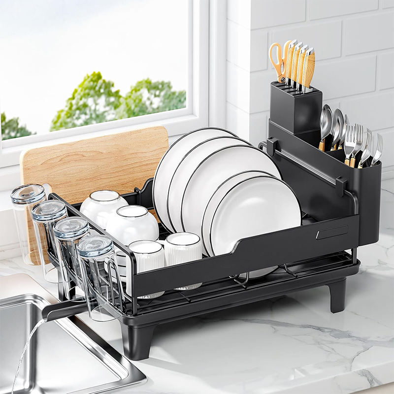 Escurridor de Platos Multifuncional con Portavasos y Tabla de Cortar