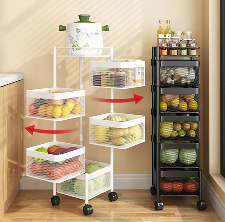 Estante de almacenamiento giratorio de acero al carbono para cocina, organizador de cesta de frutas y verduras de Metal multicapa con rueda