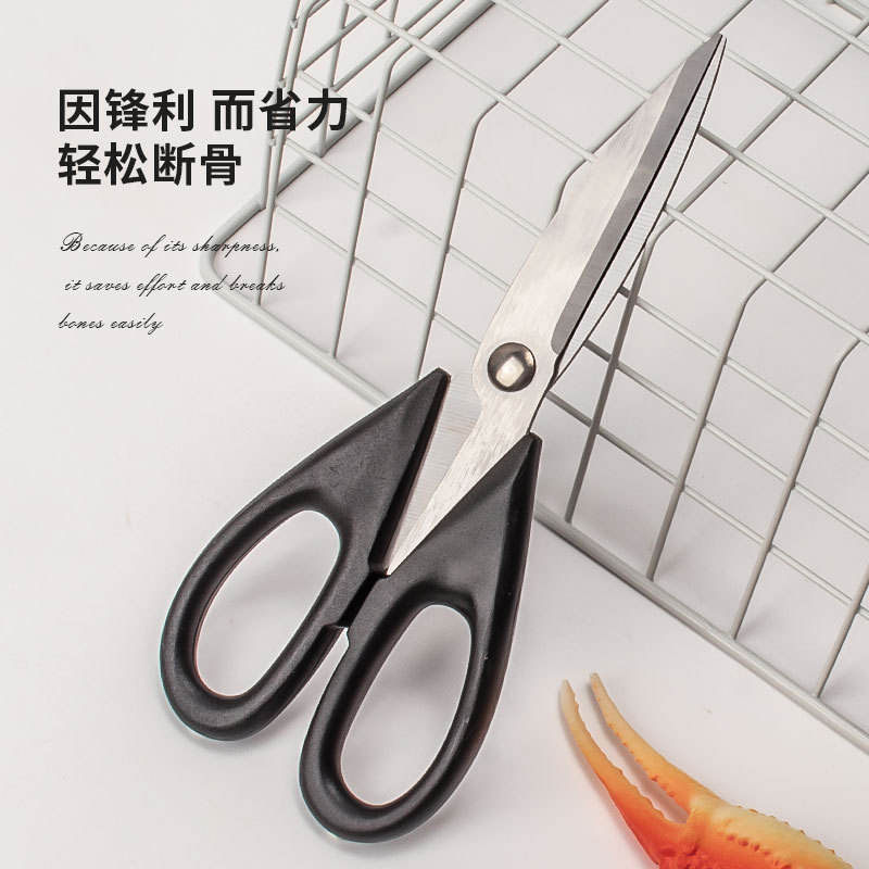 Kitchen Scissors Stainless Steel Black Straight Head Heavy Duty For Home Cooking Seafood Fish Bone Cutting