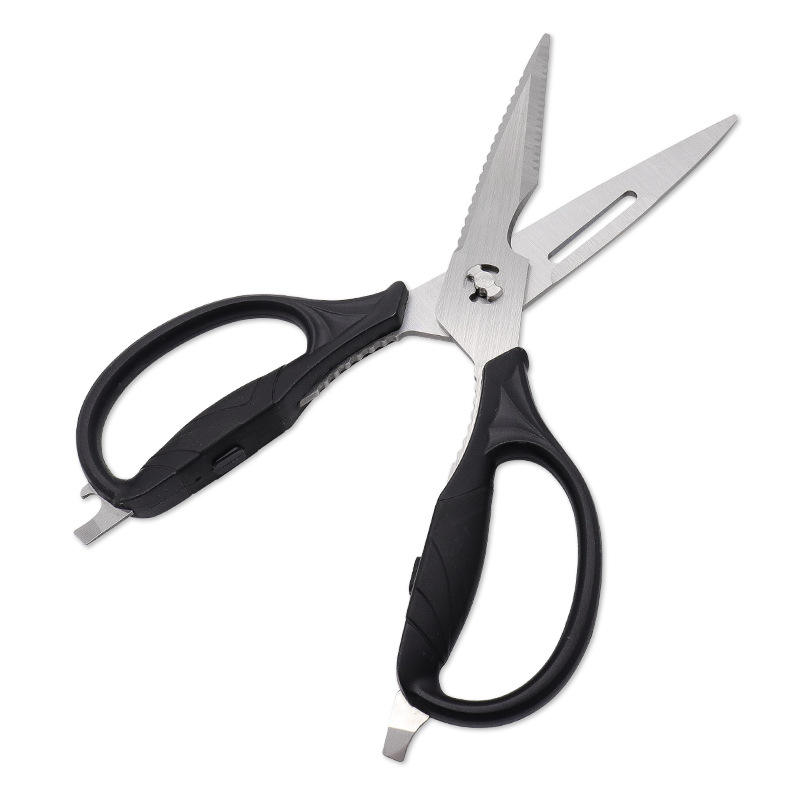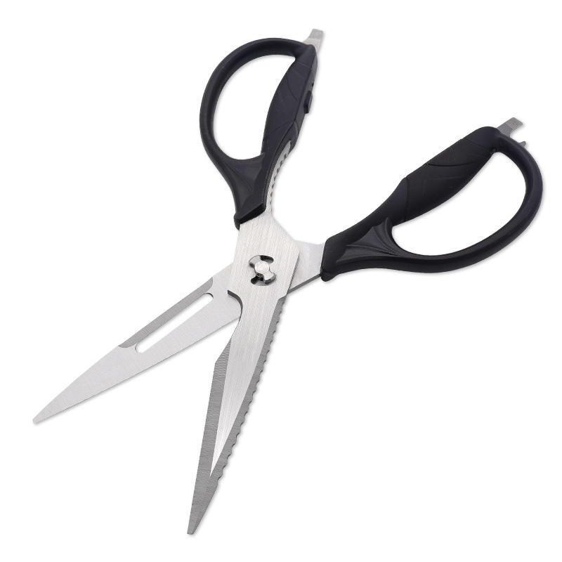 Tijeras de cocina de acero inoxidable, negras, de cabeza recta, para uso doméstico, con cuchillas desmontables para pollo, pescado y barbacoa