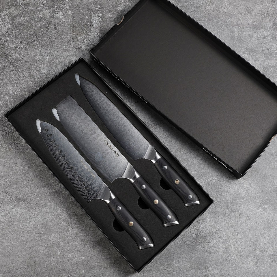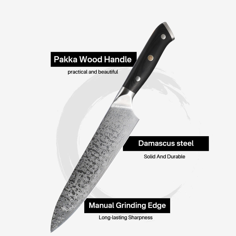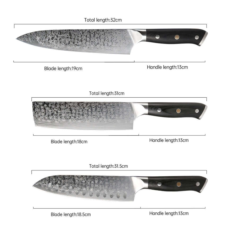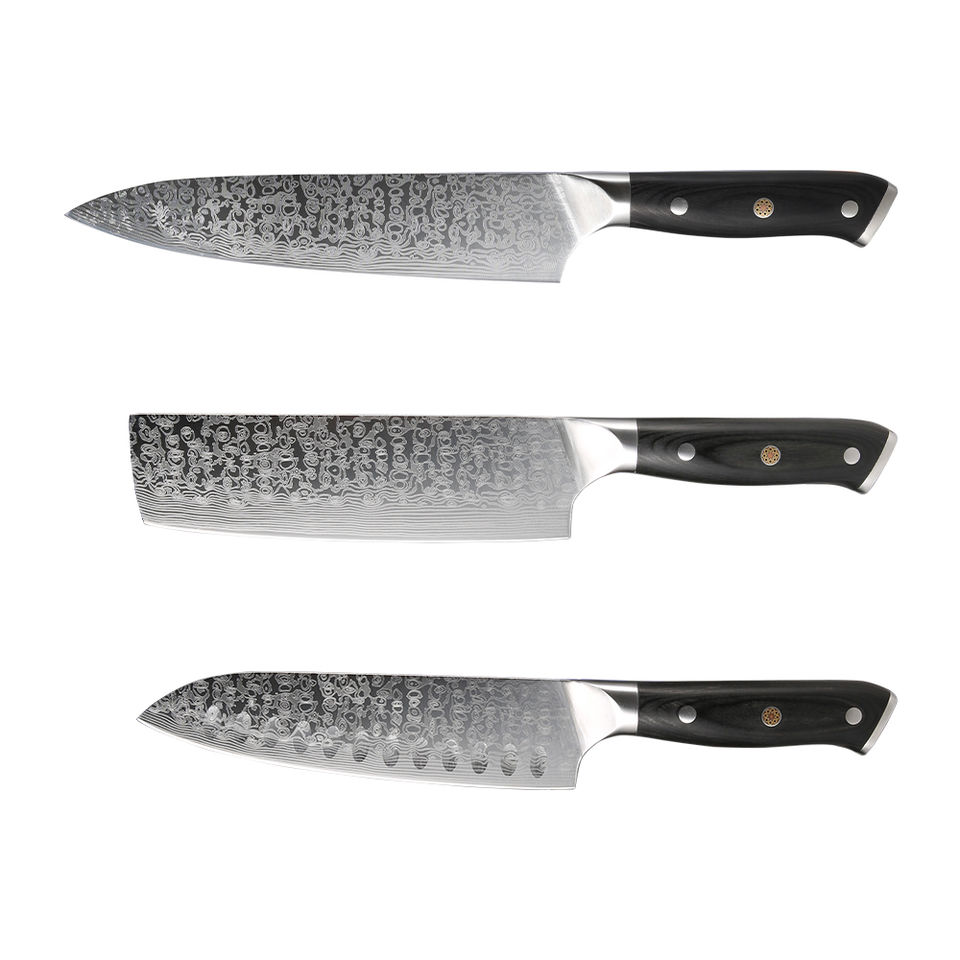 Juego de Cuchillos de Cocina con Patrón Láser Damasco, Acero al Carbono, Acabado de Alto Brillo, Aptos para Lavavajillas